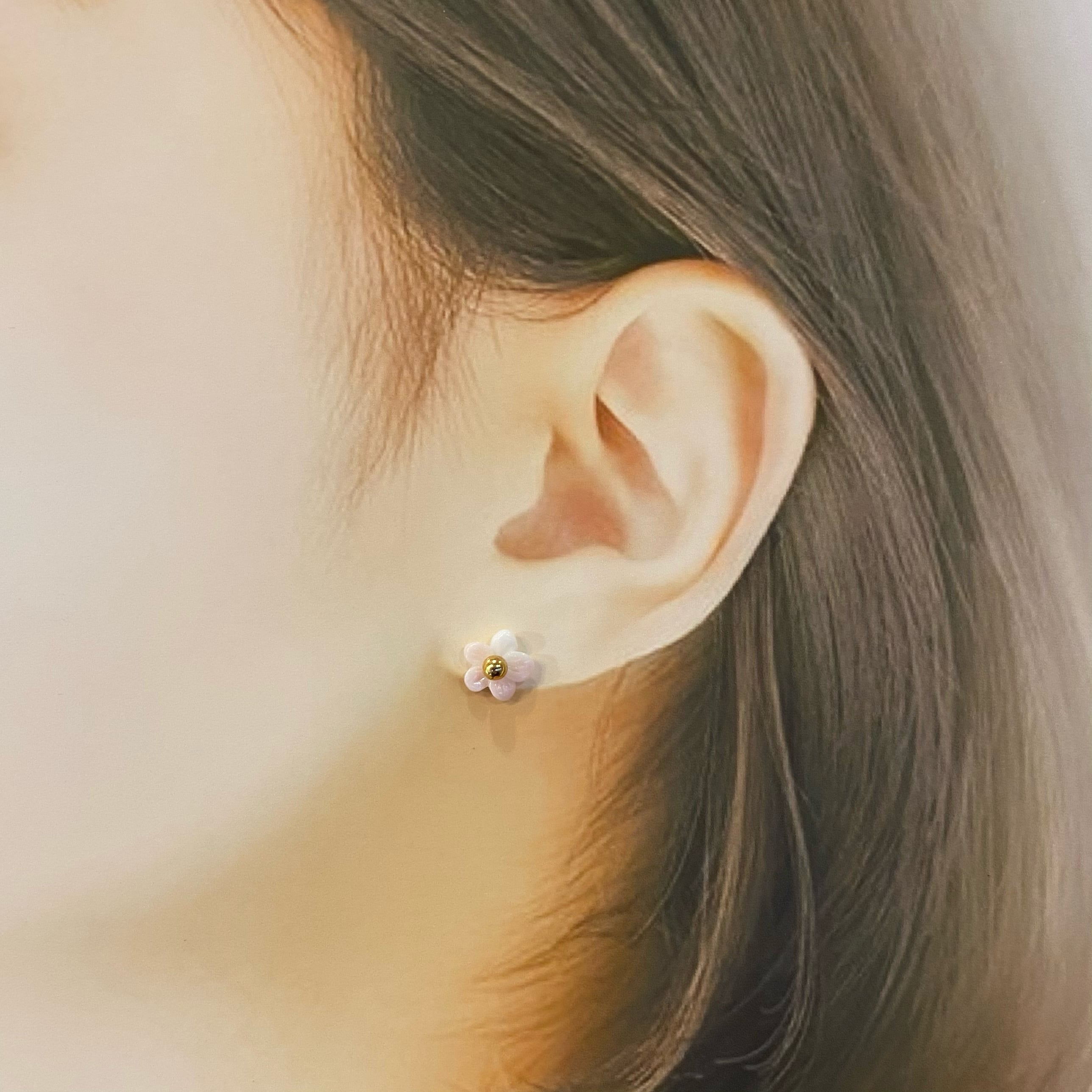 花びらは、取り外しが出来るので、その日の気分で、シンプルに丸玉ピアスのみの使用も可能です。